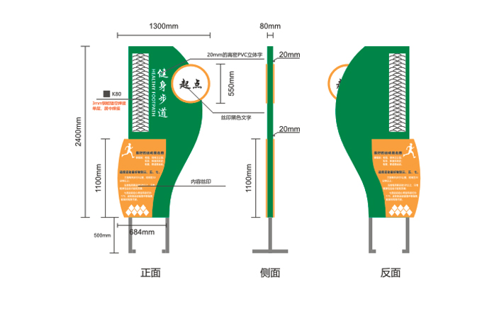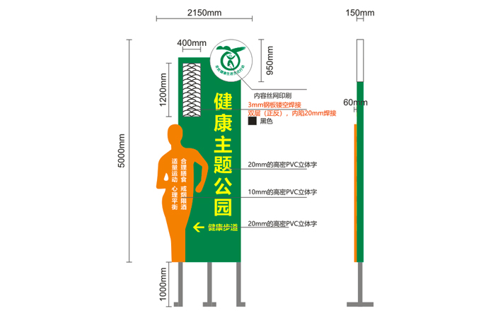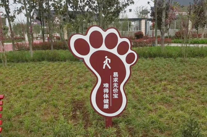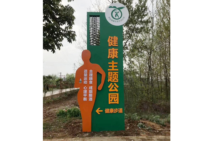 3、健康知識(shí)的宣傳:通過健康理念牌、健康標(biāo)語牌、組合式健康宣傳欄、互動(dòng)式健康指標(biāo)轉(zhuǎn)盤、騎行雕像等健康知識(shí)的載體,結(jié)合“健康理念、健康生活方式、‘三減三建’、‘除四害’”等文字性宣傳內(nèi)容,充分體現(xiàn)健康主題公園的多樣性、豐富性、趣味性等人們喜聞樂見的宣傳主題。下面河南阿提森實(shí)業(yè)有限公司就帶來近期設(shè)計(jì)制作的健康主題公園標(biāo)識(shí)系統(tǒng)案例,一起來看看吧!